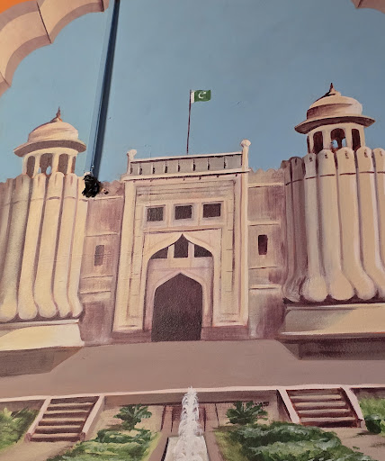 The décor features the Pakistani national flag and heritage imagery, with no Indian representation. While cultures sometimes overlap, this space is clearly Pakistani.