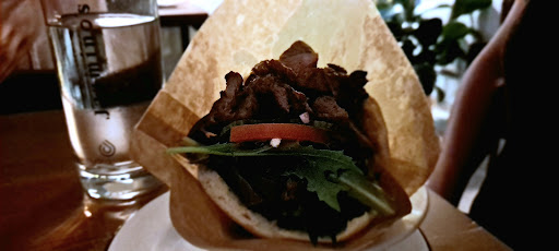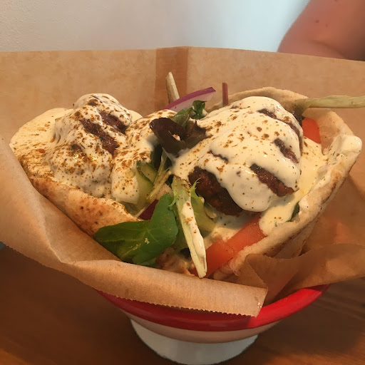 Palestinian inspired small menu with homemade pita bread and different meat fillings as main dishes.