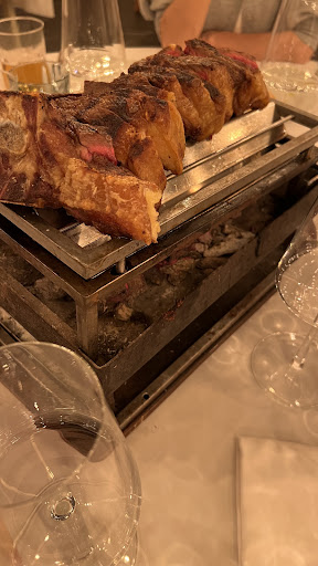Terrible service at pretty much all levels!!! We were 4 but one of us wanted fish so we could not have the menu because all the table has to take it!? I was the only one having wine but there is only one wine by the glass. I also was not told what wine until poured in my glass. Very average. I might have bought a nice bottle had been given a choice! Appetizers are seriously over priced!! So 3 of us decided to have the « rib steak ». So the waiter (who seemed to have a cold) decides that it’s going to be one steak for the 3 of us (supposedly he would put a big one)… no discussion. The steak is served on coals on a mini bbq (cool). This was barely enough for 2. We desperately tried to find all the meat possible with knifes that were really not very sharp. This was supposed to be served with fries and roasted peppers: we got a single regular-sized plate, with both on the same plate, for all three of us. There was way too much salt on the meat (meat was good however). I would have had a second (or third) glass of wine to drown my deception, and dilute the salt, but I was never offered the chance even if I finished my glass with the appetizers. That’s always a sign when they can’t even be bothered to sell you wine. Overall, we had 4 waiters and waitresses come to our table but it really was quite a rough and messy service. The bill was over 250 euros for a very disappointing experience. Obviously, I will...