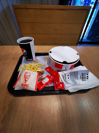 A small place but with enough space to eat the classic KFC fast food. It's situated just behind the bus stop and it has an easy and practical location where to get. The employees are kind and careful for the customers' needs and very understandable especially with foreigners. They always keep the local clean and tidy. The only pity, speaking just for myself, is that they don't have salad as a choice for side dish in the menu from the display...
