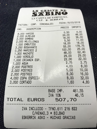 Un restaurante muy recomendable, tanto por la calidad de su cocina como por el excelente trato recibido. Sin duda, volveremos.Hace unas semanas tuve la oportunidad de visitar La Casita de Sabino, en Bilbao, acompañada de otra persona y de mi perra guía. La experiencia fue excelente desde el primer momento. El trato por parte del personal fue excepcional: amables, profesionales y muy atentos en todo momento. Como no teníamos claro qué pedir, nos ofrecieron un asesoramiento muy acertado.