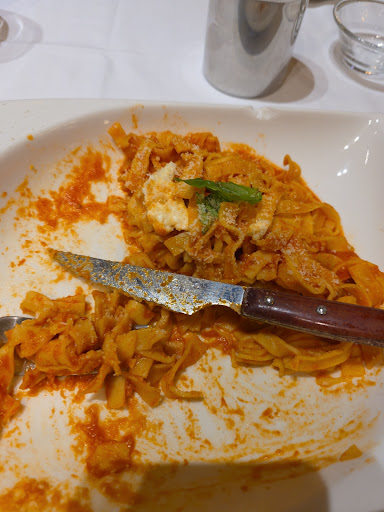 Nos sorprendió que no hubiera vino lambrusco ni tinto ni rosado. No nos asesoraron y cometimos el error de pedir el vino de la casa, que es imbebible. Al servicio se le olvidó poner los platos una vez traida la comida, se les rompían las copas, recogían los cristales dejando la mitad en el suelo y tardando en recoger (pasaron dos clientes pisando los restos) hablaban entre ellos desorganizadamente y tuvimos que pedir la cuenta hasta en 4 ocasiones.