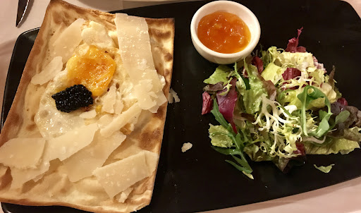 Food: average at best! Overpriced for what it is and no real pizza (dough without yeast - more like a tarter flambée)