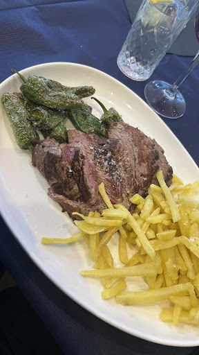 Espectacular, increíble, delicioso, exquisito, una relación calidad, cantidad, precio insuperable. El trato es súper profesional, son encantadores. Héctor, el chef y Rodrigo compañero y también socios y dueños del restaurante, te guían asombrosamente bien, ofreciendo un trato insuperable y familiar. El resto de personal también absolutamente atentos y educadísimos. Son especialistas en carnes y pescados, aunque su carta es muy variada y completa con muchos entrantes deliciosos para elegir. Fuimos cuatro personas, como principales pedimos rape acompañado de aceite con una fritura de ajo y guindilla que estaba muy jugoso, sabroso y espectacularmente cocinado, una exquisitez con su particular carne prieta pero a la vez tierna y en su punto perfecto. Se impregnaba el espectacular sabor en la boca y solo podíamos emitir sonidos de disfrute culinario. Después pedimos la chuleta y no hay palabras para describir la calidad de la misma. Primero te dan a elegir la pieza y te explican las diferentes maduraciones (mientras más tiempo de maduración un sabor más intenso, menos más suave), pedimos una de maduración intermedia. Te cortan el peso deseado y te lo muestran en la báscula, mientras te guían de forma profesional la cantidad recomendada en relación con lo que vas a pedir y quieres comer. Nos la trajeron marcadita y fileteada, junto con una plancha caliente para que los comensales se la hagan a su gusto, a mí particularmente me gusta muy poco hecha. La carne era increíblemente suave, se deshacía en la boca y se podía partir con un cuchillo de mantequilla. Tenía un sabor espectacular y se notaba que era de una altísima calidad, además como buenos profesionales de la carne y conocedores de que nos gustaba poco hecha nos la partieron al principio, antes de pedir las demás cosas, con lo que aún estando cruda estaba atemperada y para nuestro gusto particular solo había que acercarla escasos segundos a la plancha. Por supuesto te la ponen la medida de hecha que elijas. De entrante pedimos volandeiras y estaban deliciosas, jugosas, sabrosas y tenían un gran bocado pero de sabor delicado, también pedimos puerros y aunque a mi no me gustan las verduras, mi marido y amigos me dijeron que estaban deliciosos, de lo que doy fe es que su olor era increíble. Las bebidas, vinos, cervezas etc. eran muy buenas, de calidad y económicamente asequibles. De postre pedimos una torrija para compartir y aunque yo no soy de dulces, he de decir que estuvo deliciosa, ligera y entraba fenomenal. En conjunto un lugar de referencia de Bilbao si deseas comer increíblemente bien, a un precio muy razonable, con una atención profesional e insuperable. La única pena es que al estar de viaje sólo pudimos disfrutarlo una noche, si no, hubiésemos repetido hasta probar todos los entrantes de la carta, todos los pescados y las diferentes maduraciones de la carne. Si tuviese potestad les pondría las máximas estrellas, tenedores, o puntuación. También señalar la extremada limpieza y desinfección que dada esta situación actual me parece...
