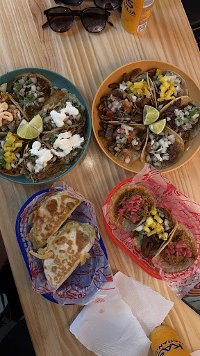 Read moreThese tacos were pretty good! Very well seasoned, good size and super fast and easy service. You order by filling out a menu with your preferences, hand it to the staff and get your food within 5 minutes? It was so fast! We had some tacos with chicken, pork, a vegetarian with eggplant and one with shrimp. The quesadillas were also great and full with cheese and the tortilla chips with guacamole are a great appetizer to share! The staff were friendly and helpful as well.