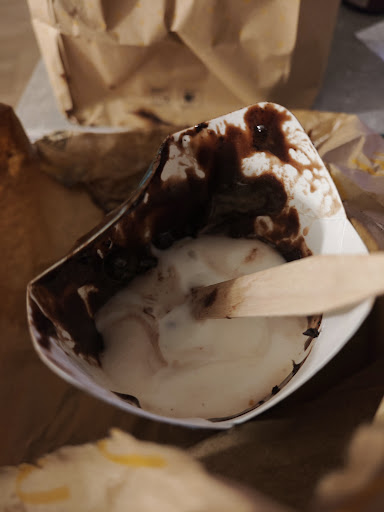 Entre lo que pedí, pedí la coca cola sin hielo, la pusieron con hielo( lo poco que quedó en el vaso, cuando se cayó todo ). Ni un sobre de ketchup para todo el pedido, ni las 2 salsa Deluxe que tenían que venir. Y mi hamburguesa que tenía que llevar cebolla, no tenía ni un trozo.