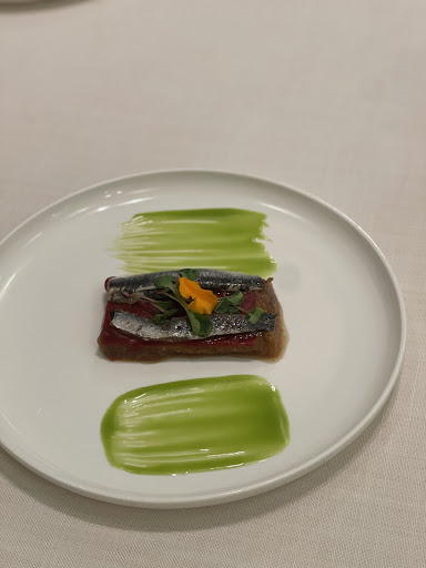 Read moreA Michelin one star restaurant. Underwhelming. We had mussels and anchovies cooked two ways for a starter. The mussels did not taste as anything really, and were underseasoned to our taste. The anchovies where ok and the sauce was nice. However 20 euro for 4 fishes is too much given the fact that two days earlier in Porto we had 12 grilled sardines for 6 euros at the beach. And fatty grilled fish flavor is essentially the same. So you are paying for one of the cooks putting charcoal over the fish in front of you. For a main course we had sweetbreads and tuna belly. The tuna was very good and flavorful we really liked it. The sweetbreads preparation is a miss for me - deep frying does not do anything for flavor. The sweetbreads tasted as pop corn chicken in the US - mostly the batter. For desserts we had avocado ice cream ( nice combination of salty and sweet - we liked a lot) and some strawberry desert that was good but not outstanding. The wines are reasonably priced. We had a local hondarrabi zuri and it was excellent. The staff is nice, efficient and attentive - they do not bother you much as at some of similar places. We opted out of a tasting menu and it was the right choice. We also had some complimentary starters from the chef. I did not understand the “gazpacho” - it tasted like raw celery juice. The other three were good. Overall it was a pleasant experience, but in my opinion it does not worth the money…I...