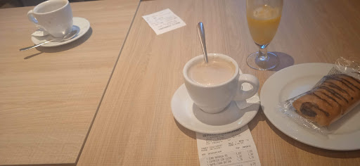 Read moreTienen una oferta de desayuno a 4.20€ y en la foto sale un zumo de naranja, un café con leche y lago de bollería. De principio la camarera me habla en un tono apurado y exigente... Le preguntó si me puede hacer el desayuno pero sin gluten (en internet leí que tenían productos sin gluten). Me ofrece una bandeja y me dice que eso es todo lo que tienen (una palmerita de chocolate y una napolitana con pintas de bollería envasada y grasienta)... Acepto la napolitana ya que mis opciones son pocas y tengo hambre... Su siguiente pregunta: ¿Y qué más???... Yo: El desayuno, lleva café y zumo según la foto... Tras el café: ¿Y qué más???.... Yo: un zumo... Ella: ¿Grande, mediano o pequeño??... Pequeño va, para que no trabajes mucho...