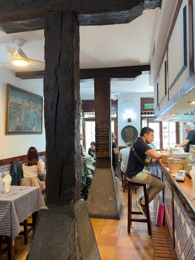 Read moreLocal pequeño tipo taberna, con mesas cuadradas pequeñas, no las conté creo que eran unas 8 mesas. para sentarte , taburetes de madera poco cómodos. para comer el sistema menú con platos que tienen suplemento. No tiene carta para poder pedir platos individuales. El menú tiene precio de 16,50 y de bebida solo nos entró agua en una jarra, el vino dos copas que tomamos ,aparte. Dentro del menú hay platos que tienen suplemento, De primero pedimos puerros confitados 7 € de suplemento y sopa de ajo (sirvieron en cazuela de barro al probarla venía fría pedi que me la calentara)sin suplemento, aunque a la hora de cobrar la sopa de ajo me ponía de suplemento 5 € se lo comenté y me hicieron un ticket nuevo. De segundo hígado encebollado sin suplemento, y bacalao gourmet pil pil, en carta 14 € de suplemento, anotaron 15 € , descontaron 1 € en segundo ticket, postres caseros bizcocho de naranja estaba bien, el flan de café, textura buena aunque no sabía apenas a café. La atención de entrada bien, y cuando comentamos los errores en el precio pusieron disculpas ilogicas, diciendo que la sopa de ajo era de bacalao, cuando en el menú solo ponía sopa de ajo y no tenía suplemento ó el que ha escrito la carta lo ha puesto mal. Y en cuanto a la comida no estaba mal, aunque muy cara para lo...