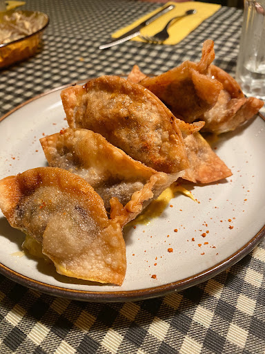 Gyosa frita de berenjena(con queso feta sobre salsa de curry y miel)(6uds)🟢 - 10’5€
