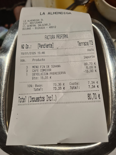 Lástima por como lo gestionan pero está bien informarlo para que no lo sufran otras personas o grupos. Si os pasara pagad los menús que al menos los disfrutaréis.