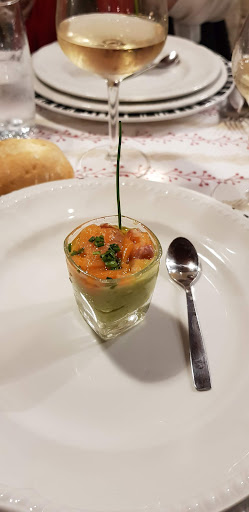 De aperitivo se incluye una copita de tartar de salmón noruego con crema de aguacate que esta realmente bueno, pero que te quedas con ganas de más.