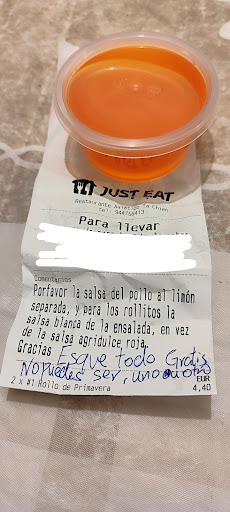 Read moreServicio MALO, NEFASTO. A las 13:44 pido 2 arroz tres delicias, 1 ternera con bambú y setas, y más cosas, y 40 minutos después nos traen el pedido mal: 1 de arroz y 2 de ternera. Les llamo por teléfono a las 14:30 nada más recibir el pedido y me dicen que me traerán el arroz que falta y que se llevarán lo que han traído de más, y que pasarán cuanto antes. En vez de priorizar mi pedido, ya que estoy SIN COMER mientras que mi pareja tiene repetido su plato, pasan 40 minutos más y aún no traen mi arroz. Les llamo de nuevo y me dicen que están hasta arriba, que hay mucha gente, y que me devolverán el dinero o me traerán el arroz (supongo que dependerá del azar, una moneda lanzada al aire) y que no saben dónde está el transportista. Son las 15:22, por lo que han pasado 52 minutos desde que reclamé el error, y estoy sin comer. Y no tiene pinta de que se vayan a pasar por mi casa. Yo sin comer, y encima sin mi dinero. Es decir, me siento estafado. Además, mientras me ponían excusas, me han colgado el teléfono dejándome la palabra en la boca. Independientemente de si me devuelven el dinero o no, es la última vez que pido comida en este restaurante.
