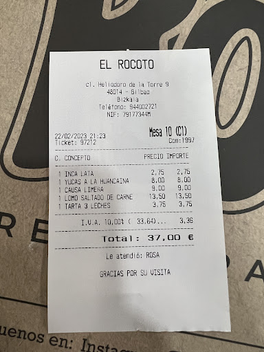 Read moreWell, it’s gone down in quality. The main dish, Lomo Saltado, had some odd sauce that I never saw before, made the overall color seem off and darker. The yuca portion was small especially for the high price, easily a 10x markup. 80 cents in yuca? The potato salad was pretty good. Fresh celery was easily noted and appreciated. It was a good portion to share. The tres leches was very good. The soda was 300ml at 2.75€ BUT a better deal would be the 2.5L bottle for 8€ (a third of the cost per ML). The walls of the restaurant have definitely seen better days. Oddly, there are black patches...