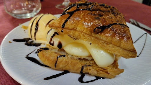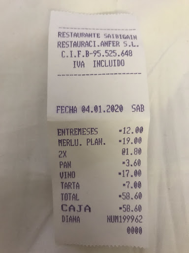 Read moreIn the heart of old Bilbao, place where locals go to enjoy honest Basque dishes with a character. In workdays there's a lunch menu at just over 20eur, bottle of wine on the table for you to help yourself at will. I went twice. Sunday I ate a la carte. Revuelto of mushrooms, strong flavored and delicious. Then a grilled Lubina, and dessert to top it. The pic speaks by itself. I was famished. Price range 20-30 if you don't eat that much. The waitress was smiling and fast, the music 70's and 80's, quite my kind of.