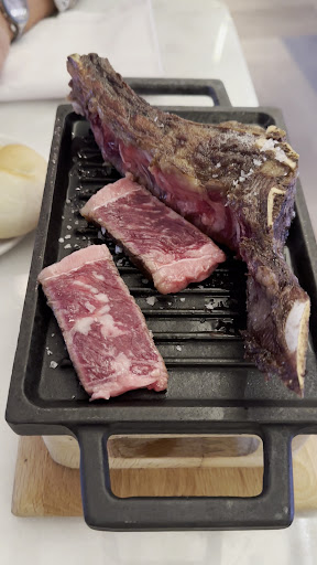Read moreEl restaurante muy bonito, las mesas, la vajilla, las vistas al campo de San Mamés. Pero la comida, 18 euros por unas croquetas de txistorra normalitas, el arroz con pulpo braseado, poca ración y poco pulpo…la merluza al estilo Fernando era la merluza a la romana de toda la vida y la chuleta…nos la vendió como si fuera la mejor del mundo y no, pedimos chuleta para 2 y nos la sacaron repartida en dos platos, la mía…bueno, la de la otra persona era todo grasa…y qué precio!!! Los postres no llamaban la atención y pedimos dos para compartir. En general los precios son muy altos para lo que ofrecen…no puedes cobrar la chuleta a 71 euros el kilo y tener que pedir 3 planchas calientes porque salían frías…ni que el camarero venga a cambiarte los cubiertos con ellos en la mano sin usar una muletilla(muchos años trabajando en hostelería) Y del café ni hablamos…2,50 por un café normalito En resumen, precios excesivos para lo que ofrecen… Para más detalles, visita kbalando...