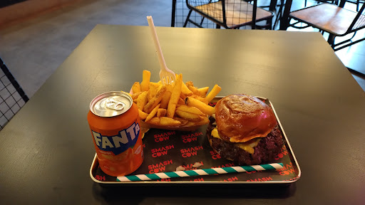 Hamburguesería sin chorradas. 4 hamburguesas configuradas y un montón de ingredientes para añadir o quitar. El Smash bien hecho, con su costra característica. Pedido y pago mediante pantalla táctil, si no entiendes algo la chica sale y te lo explica amablemente. Local pequeño más orientado al take away pero con tres mesas de 4 y una alta de 2. Cocina vista, buena sensación. Está en una calle sin salida, lo que es un acierto para ir a recoger con coche porque las molestias al tráfico de la calle son casi inexistentes y también es discreto de cara a poder parar en la puerta para recoger el pedido y no ser multado. En cuanto a la comida, no engaña. Hamburguesa simple de ternera pero bien aderezada con las salsas. No es una Angus pero tampoco te venden éso, y menos mal, porque la carne Angus es para disfrutar con un cocinado que no sea Smash. Ración generosa de patatas fritas (con piel) a un precio muy competitivo. En resumen, todo muy rico. Espero que les vaya muy bien y puedan abrir un local con más...