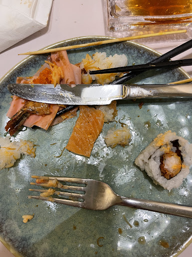 Read moreAyer día 20 de agosto, fui a cenar con mi pareja ya que viendo las reseñas y valoraciones de Google, lo optábamos como una excelente opción. Pero lamentablemente, solo nos llevamos la sensación al entrar por la puerta y sentarnos, porqué lo único a destacar como agradable fue la atención del camarero, qué fue muy grata, amable y considerando en todo momento la comodidad, incluso avisando de aspectos que no habíamos contemplado en la carta, me gustaría destacar ya que no me sé el nombre, que era un chico joven. Para empezar por comentar alguna que otra cosa que nos asombró, es qué además de costar 22,95€ el buffet libre de noche, que por cuestión céntrica del restaurante y carta, no podíamos quejarnos, había limitaciones en cuanto a las raciones de los platos, pudiendo pedir únicamente 3 veces por comensal unos platos específicos, considerando el precio del menú por cabeza, vemos desafortunado que exista la limitación de platos, para algo estás dirigiéndote a un buffet libre y no de carta, que pienso que es lo primero que piensas cuando vas a un restaurante así, que podrás pedir lo que quieras sin problema. En segundo lugar, considero que mucha carta de vinos pero poca de comida, los platos eran bastante simples y sosos a pesar de tener una carta de presentación excelente, me gusta apreciar y valorar mucho los sabores y, en los platos de sushi, el arroz no era de gran sabor como para poner tanta cantidad en las piezas, ya que, lo único que consigue es llenar a la persona y perder el sabor del salmón o el acompañante que lleve el propio arroz, por lo que, tampoco podría tener buenas palabras para el sabor de sus platos. He ido a sushis de buffet más básicos en carta pero más resultantes en calidad. Algo que podría decir que se apreciaba, era la rapidez en traer los platos de comida, aunque viendo el esmero en el empleo de elaboración, sería otro punto a destacar negativo que encima tardasen. Los peores 50€ invertidos en un buffet libre de sushi que he gastado en todas las experiencias que llevo vividas, que no han sido pocas, ya que suelo comer unas 2/3 veces al mes. Es de mis comidas favoritas y no quedamos con un buen gusto en el paladar, se nos repetía el sabor y acidez de la comida durante la noche, supongo que al comernos dos o tres piezas ya nos quedamos saciados ya que eran sabores de mayonesas y salsas fuertes. Me sabe mal escribir esta reseña pero mis sensaciones quería reflejarlas de alguna manera y transmitirlas a otros posibles consumidores del restaurante. Pd: Somos residentes de Barcelona y jamás hemos visto una limitación de platos como esta y, los precios de los buffet, rondan por el mismo precio, y destacando en exponente la calidad, que es mucho más buena. Algún ejemplo de referencia para que podáis ver si vais a Barcelona, Un décimo podría deciros que es el mejor sushi que he probado...