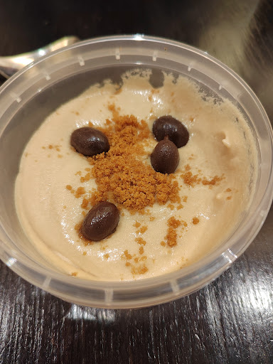 Nos regalaron una tarrina de postre en compensación, gesto que nos agrado y no pudimos pedir postre porque como he mencionado estaban cerrando para cuando terminamos las hamburguesas.