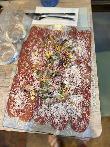 Very difficult to find a restaurant in Bilbao for dinner without reservations. Walking around we stumbled across this nice looking restaurant terrace and decided to try the food. I was pleasantly surprised with the beef carpaccio, which was the best I’ve had; my bf thought that his pulpo gallega was too salty and did not finish it. The second course I’ve ordered the roasted tuna belly and the cod, I liked the cod but my bf did not touch his cod as he didn’t like the first bite. For dessert I ordered the cheesecake which was so delicious. The only downside for this place is the toilet area - if I’ve seen it before sitting down I would’ve skipped this restaurant. The service is also a bit slow but the waiters are very nice...