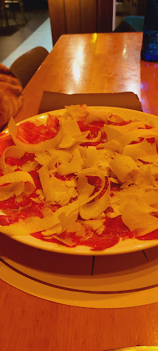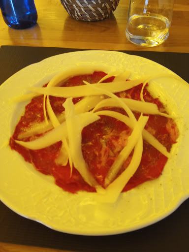 Read moreSitio moderno, agradable y céntrico. Trato muy cordial de la regente del negocio, muy clara en cuanto si puede ofrecer rapidez o no cuando tiene todo lleno. Se agradece esa sinceridad. Atención en mesas muy correcta. Aseos nuevos, limpios. En general, todo está limpio. Amplio espacio entre mesas, resulta muy confortable. Por decir algo discordante... quizás falta algo de luz en la planta de arriba, quede claro que es una opinión personal y que en mi evaluación global, la nota sigue siendo alta. Menú del día, entre semana, con 3 primeros y 3 segundos a elegir, postre y café opcionales. Las propuestas no son muchas, ni convencionales. Eso le da personalidad al establecimiento. Cuidada presentación de los platos, buen género, buena relación calidad-precio. Probé en dos visitas, entre otras cosas, carpaccio de ternera, bien presentado, con su corte finísimo (ver foto). Ensalada con paté, con pasas de Corinto y abundante paté, y unos deliciosos filetes finos de ternera. Hacía mucho tiempo que un plato de un menú del día no me sorprendía, y esos filetitos finos, hechos perfectamente, sabrosos y tiernos a la vez son de matrícula de honor. Espero volver pronto a Binéfar para comer en...
