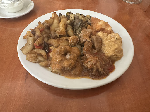 Read moreHem anat a menjar un variat. He demanat el gran amb tot menys ensalada russa i llengua. (Frits de matances i xot, pica-pica, pollastre al curri, pilotes, carn en salsa i xampinyons). No tenien en aquest moment croquetes, calamars i callos, una llàstima.