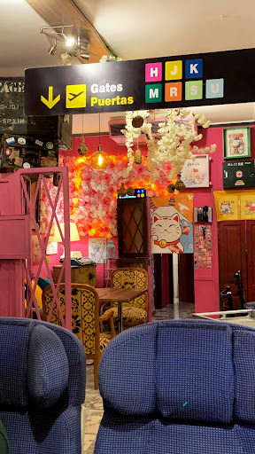 I visited this restaurant which was recommended to my by a friend and WHAT A GREAT DISCOVERY! Not only you get to try delicious Thai food, but you also get immersed in a wonderful travel environment. You'll be sitting on plane seats, surrounded by airport signs and flight views, even your food comes in a plane trolley! Lots of cat references too, if you love cats like me!