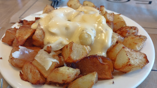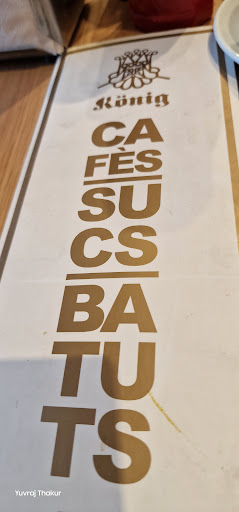Restaurant que forma part d'una cadena de locals, tots ells amb la mateixa oferta gastronòmica. La carta és molt extensa. Inclou tapes, racions, entrepans amb tots tipus de pans i possibilitats, hamburgueses, amanides i plats combinats. Per cada una de les opcions, hi ha molta varietat. Per exemple, la carta inclou 7-8 amanides diferents o una vintena d'hamburgueses amb diversos ingredients combinats. També hi ha una carta específica de postres. És un local en el qual es poden fer tots els àpats i, pràcticament, a qualsevol hora. S'hi pot dinar, berenar, sopar... Però també pendre tapes o entrepans en qualsevol hora del dia, de fer qualsevol plat de la carta perquè la cuina és continuada. En el nostre cas, vam dinar i vam demanar unes patates quatre formatges per compartir. Després una amanida Marco amb burrata,canonges, rúcula, tomaquets confitats, nous, ceba, olives negres i oli d'alfàbrega; una hamburguesa premium Konig amb 200gr de carn de vedella, bacon, formatge , tomàquet, enciam i salsa barbacoa; i un entrepà "americà" Indiana amb pulled pork, enciam, tomàquet, ceba i salsa cheddar. Les patates com a tapa van bé perquè de seguida les serveixen. De fet, tan les de formatges com les braves són dues de racions més demanades. Són patates fregides bàsiques i la salsa de formatges li donen un toc especial. La combinació d'ingredients de l'amanida era bona i encertada. La burrata barrejada amb els tomàquets confitats i les nous, era deliciosa. L' oli d'alfàbrega li aportava un toc especial. L'hamburguesa i l'entrepà més bàsics. El servei va ser força ràpid. Van a la idea, ja que la rotació dels...