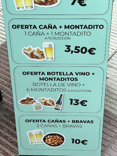 Il locale sarebbe anche carino, in una buona posizione, ma il servizio è davvero approssimativo, una ragazza che era addetta alla preparazione dei piatti l'ho vista fare coccole a un cane e poi ritornare a fare i piatti senza nemmeno lavarsi le mani. Inoltre fuori dal locale c'è una lavagna che pubblicizza un'offerta con bottiglia di vino e 6 montaditos a scelta a 13€. Cosa capireste voi? Io avevo capito che l'offerta fosse bottiglia di vino + 6 montaditos per un totale di 13€. Invece i montaditos, peraltro di qualità davvero bassa, vengono fatti pagare a parte e nemmeno a buon mercato. Totale: oltre 30...