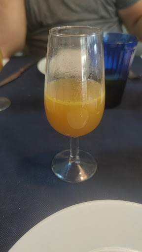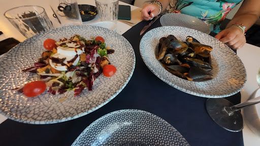 Comimos de menú (hay unos primeros de entrante y el segundo y el postre lo escoges tu) Comimos de primero un vaso de consomé, unos mejillones al vapor, unas almejas a la marinera y unas navajas a la plancha. Todo fresco, de buena calidad, servido recién hecho. Y de segundo pedimos solomillo relleno al horno con bacon, queso de cabra y pasas. Estaba buenísimo y te lo hacían a tu gusto, a mi pareja le gusta hecho y a mi muy hecho y acertaron de pleno con el punto de los dos. De postres tomé sorbete de limón pero había gran variedad para elegir también.