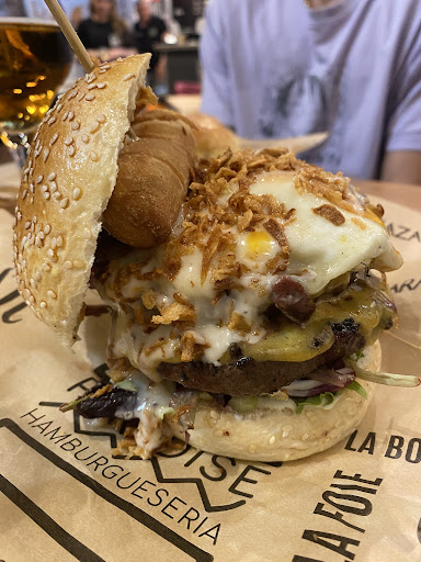 Una cosa que me molesta mucho es que se engañe al cliente con la oferta gastronòmica y según mi opinión, creo que este fue el caso. Adjunto imagen de la hamburguesa que se espera, presentada al concurso, y la que me llegó a la mesa: el queso sin fundir; un guancciale que no presenta el punto de cocción como el que se puede observar en la foto del concurso, mas bien estaba crudo; un pan brioche frío y reitero, ni punto de comparación con lo observado en la imagen. Por lo que refiere a la carne, no quiero que se tome como una queja como las otras descripciones, sino como una opinión personal, ya que no soy experto en carnes maduradas, pero he tenido el placer de probar carnes de este estilo, y no me transmitió los sabores de una hamburguesa de carne madurada durante 180 días.