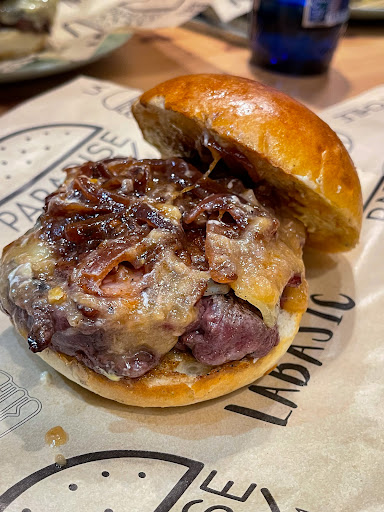 Una cosa que me molesta mucho es que se engañe al cliente con la oferta gastronòmica y según mi opinión, creo que este fue el caso. Adjunto imagen de la hamburguesa que se espera, presentada al concurso, y la que me llegó a la mesa: el queso sin fundir; un guancciale que no presenta el punto de cocción como el que se puede observar en la foto del concurso, mas bien estaba crudo; un pan brioche frío y reitero, ni punto de comparación con lo observado en la imagen. Por lo que refiere a la carne, no quiero que se tome como una queja como las otras descripciones, sino como una opinión personal, ya que no soy experto en carnes maduradas, pero he tenido el placer de probar carnes de este estilo, y no me transmitió los sabores de una hamburguesa de carne madurada durante 180 días.