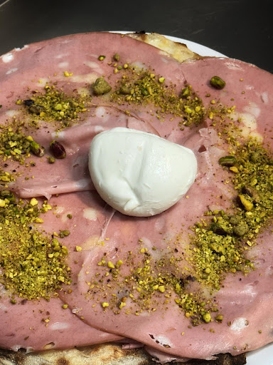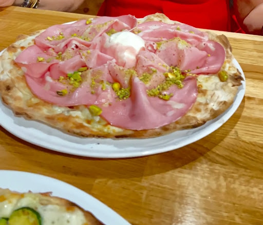 Entramos y nos sorprendió el local y su decoración, con barra y dos mesas en el piso principal y en el piso superior con más de 10 mesas. El ambiente es una mezcla entre industrial y clásico (muy buen gusto). También me toca recalcar el buen trato de todas las personas desde que pusimos el primer pie en el local, sentándonos en el piso de arriba y dejándonos guiar por el camarero. Nuestra elección fueron dos pizzas, una de mortadela con pistacho y otra margarita, y un tiramisú fantástico (si lo hubiéramos sabido antes, habríamos dejado más hueco). El precio bastante bueno en relación calidad precio , y de seguro que...