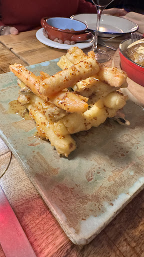 Read moreLa comida que probamos es cierto que estaba increíblemente rica. Las croquetas brutales, las alcachofas, la hamburguesa y la ensalada César también. El arroz no me encantó sinceramente. Nos quedamos con ganas de probar las costillas que no llegaron porque había mucho lío con el día de la madre y no fue su mejor día. Muy poca gente en cocina para tantas mesas. Los pobres camareros hacían lo mejor que podían su trabajo y ya les daba hasta vergüenza pedir perdón porque los platos no salían de cocina. El trato de los camareros un 10! Sobre todo la chica morena joven. Super profesional! Un encanto! Poco entendible también que los jefes estuvieran ahí mirando todo el caos, sentados tomando algo en lugar de arrimar el hombro y sacar la comida como fuera para que la gente no se quejara y pararan de anular platos que llevaban 1h esperando. Lo dicho, la comida está deliciosa lo único que deberían poner orden en la cocina y no llenar tanto el local si no pueden dar servicio a...