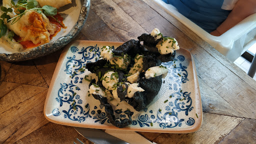 Read moreBonito local con decoración moderna tipo industrial de dos plantas, la de arriba en terraza y la de abajo en salón aunque luminoso y espacioso. La carta es una mezcla de platos típicos actualizados y otros sorprendentes que da una amplia posibilidad de opciones. Servicio rapido, atento y bastante eficiente, te reciben con un aperitivo de pan con cecina que es de agradecer. Nosotros probamos los bocabits de arroz con brandada de bacalao, pincho que sorprende por su estética, luego el sabor no tanto, pero me gusto el atrevimiento. La flor de calabacín rellena de ricotta, piquillo y sobrasada, muy rico, tempura fina, crujiente y nada grasienta, a destacar la agradable combinación de sabores. Brioche de steak tartar, pan delicioso y muy buen steak tartar. De principal tomamos los canelones de pollo asado, muy rica y cremosa la bechamel, pasta en su punto y relleno muy sabroso, solo puntualizar que igual tienen mucha cantidad de relleno en relación al tamaño, pero están muy buenos. De postre pedimos la tarta de queso cremosa, que esta deliciosa y nos atrevimos con el PINTX´ER BUENO, para mi algo pesado por tanto chocolate, pero estaba bueno y es muy original. Todo esto con sus cervezas correspondientes, salimos a unos 25-30 €, creo que bastante razonable para lo que tomamos. Recomendable visita, aconsejo reservar en la reserva se puede especificar si en planta de...
