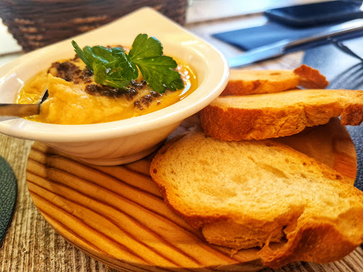 Read moreHemos cenado 3 personas está misma noche en el restaurante y a primera vista es un lugar agradable. Cuando entramos nos sentamos y tardaron como 25 minutos en preguntar si queríamos algo para beber o cualquier cosa, después de esto y dejándonos aconsejar por la sugerencia del día, pidimos un plato de pasta para cada uno y un entretante para compartir entre los 3. Los platos no eran muy abundantes y se disculparon xq no tenían pan pero finalmente trajeron un poco el cual la misma camarera nos dijo que era del chino. Un detalle que consiguieran pan pero la calidad era mala y los platos escasos. Así que la sorpresa vino con la cuenta cuando sin avisar nos ponen 7,50 por el pan del chino y xq dicen que cobran el mantel de la mesa y el cubierto. Además cobraron el agua que el otro camarero sin darse cuenta me tiro el vaso entero encima de mi ropa. Por no decir que solo queríamos una copa de vino y nos dijeron que era mejor pedir una botella que salía más barato, y al ver la cuenta la botella 17,50, así que dudo bastante que la copa una copa costase casi 6 euros por persona. En resumen cena escasa, cara y con poco detalle por el incidente del agua. No lo recomiendo en absoluto y rotundamente...