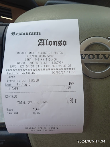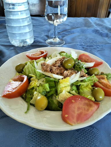 Read moreParamos por qué el anterior bar de carretera estaba cerrado y muy mala experiencia. Tiene un parking amplio pero por lo demás bastante regular. Entramos al comedor ya que fuera solo sirven bocatas que ya tienen hechos. Pedimos 4 menús y al traer los primeros se habían confundido en dos platos. Sólo había ensaladas y sopas. Pedimos sopa de "pescado" en la cual había solo un "langostino", le pregunte al camarero si tenía más que caldo para servirme y me dijo que no. Tuve que insistir pidiendo que dijera al cocinero que hiciera más, volvió con la cazuela y me hecho más langostinos, muchos bigotes y pescado (tipo merluza) con espinas, nada más. La ensalada de pasta es pasta fría. La ensalada mixta normal, lechuga, tomate, atún y aceitunas. Sitio no apto para veganos, ya que no tienen platos de solo verduras. De segundo solo platos de carne, ni pescados ni verduras. El filete estaba rico, el pollo al ajillo es en realidad pollo frito. Las patatas panaderas que acompañan a todos los segundos también bien. De postre tiene helado, yogur, natillas y cuajada. Al final nos cobraron 5 menús y tuvimos que reclamar. Lo mejor una camarera joven y muy atenta que te pregunta a ver si todo va bien o si necesitas algo. Tienen...