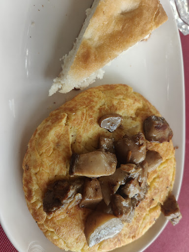 When you are on the road this is a perfect pit stop. When we arrived it was busy, however, we were greeted by a charming lady who informed us it would not be long and it wasn't - Super quick service, fresh made omelette, simple super fresh salad and really nice glass of wine Godello for 3 euros. They have an extensive egg menu ...fried to perfection. There's a shop too selling gifts, local cheese, olive oil and all sorts! Terrace too for dog friendly. It's now marked as a favourite on our...