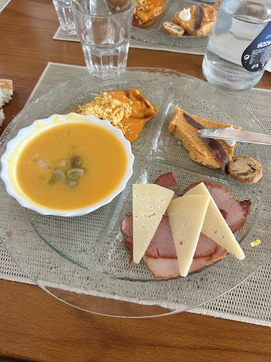 Read moreÑosss !!! estaba bueno, buena materia prima, servicio rápido.. pero , lo que muestro en la foto por 25.50 euros (menú Las Casitas), no justifica ese precio. El postre fue lo único que estaba acorde con ese precio, que era sabroso y abundante. Por no ser no era ni menú!! es un plato único ( combinado) donde ponen lo que se ve en la foto ( una taza con una crema rica), una ración de pudding de cabracho rico, sabroso pero con dos tostas ( Dos. ni una mas) , dos pimientos rellenos de bacalao y dos cuñas ( Dos!) de queso, con 4 rodajas de Orza que, repito, estaba bueno. Hay que reconocer que estaba rico, pero, me parece caro. Muy caro. La única que acertó fue la cría, que pidió un bocadillo de pluma y todos lamentamos no haberlo cogido también. 8.5 euros pero era más contundente. Los otros menus que ofrecian, eran de mismo pelo: 20 euros, ( menu bodega), 24 euros con dos huevos fritos..... chico!!! a mi se me hacia un poco "poca cosa". Si eres de cantidades este no es el sitio. Esto es fino. Ya se ve por el tipo de coche aparcado. Mucho coche, ningun camión: ya sabes lo que hay... sitio caro. Yo volví despues de dos años sin parar, y, para comer, me lo volveré a pensar. Reitero que es rico y sabroso pero raciones...