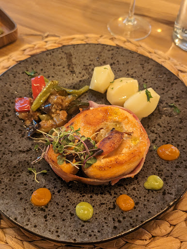 No puedo expresar lo contentos que estábamos con esta elección de restaurante. Vinimos de los EE.UU. y encontramos este hermoso restaurante justo al final de la calle de nuestro Airbnb. Este fue un viaje improvisado y nuestro español no era muy bueno, pero los propietarios eran absolutamente increíble, paciente y muy acogedor. La comida era deliciosa y hermosa. El ambiente era muy relajante y moderno. Estábamos tan tristes que no vinimos aquí hasta la última noche de nuestro viaje porque definitivamente habríamos vuelto. Si alguna vez volvemos a Boiro, sin duda volveremos.