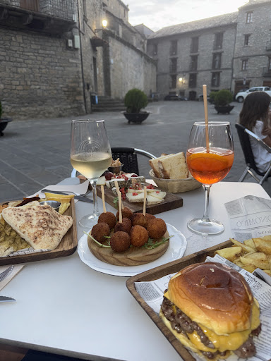Read moreCeline, the owner of this bistro is an amazing woman. Bartender, waiter, owner and hostess, she did it all and to perfection. We were a party of four freshly arrived from a six hour hike up monte perdido we were ravenous. She quickly served us 4 canas y 3 glasses of red wine. Then once an interior table open up, she hustled us inside and we ordered their yummy burgers and calamares all the while replacing our red bottle of wine. A wonderful establishment in a quiet top of an ancient town of Boltaña. Highly recommended. Thank you Celine Dion! You...