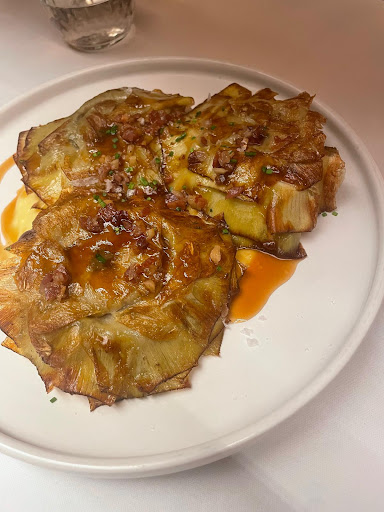 Food: We ordered the beef entrecaut which was severly undercooked and almost unchewable with ok flavour. The tuna tacos weren’t tacos, just three tiny peaces of fish with very odd flavour: salty and way too fatty, the tenderloin with foigrat was also undercooked and just not good. The entrees were alright, nothing special though: the artichockes slightly overcooked but the tar tar was good. Definitely not worth the price or the waiting time of roughly 1 hour. The service was really slow, the staff would just pass by after being asked to take the order and it took really long for the waiters to actually come up. The atmosphere was just not there: no music, barely anything except dry crusty bread and the cutlery. The building itself is...
