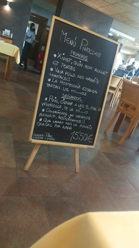 Read more¡Cuidado con la nariz... y con la cuenta! (Pizzería Pinocho) La experiencia en Pizzería Pinocho fue digna de un cuento... ¡pero no uno feliz! Los camareros desfilaban con una pizarra como si estuvieran recitando el menú degustación en verso. Un espectáculo, sí, pero a costa de unos precios que hicieron que mi bolsillo se encogiera como la nariz de Pinocho cuando mentía. Y la cantidad... bueno, digamos que los platos eran más pequeños que la conciencia de algunos políticos. Mis espaguetis a la carbonara debieron perder el sabor en algún lugar del bosque encantado, porque eran más insípidos que un discurso sin aplausos. Eso sí, mucho humo y "cocina de autor" para despistar, supongo. Luego está el tema del pan fantasma: aparece en la mesa sin que lo llames y, ¡zas!, te lo cobran. ¿Será magia? ¡No, es la cuenta! La carta, por cierto, parecía escrita por un grillo parlante borracho, llena de ironías que ni el propio Pinocho entendería. Y el gran final: ¡me querían cobrar una pizza que debió escaparse de otra mesa! Claramente, en esta pizzería las cuentas también tienen tendencia a inventar historias. En resumen, si buscas una experiencia culinaria donde la imaginación vuela (sobre todo en la cuenta), este es tu sitio. Para comer bien y a un precio razonable... ¡mejor busca otro cuento! Yo, desde luego, no volveré a dejar que me tomen el pelo...