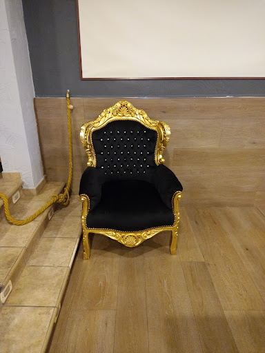 Se encuentra en un poligono, por lo que es fácil de aparcar, pero su decoración sorprende, ya que simula una casa antigua, con postigos, balcones e incluso "entrada de carro".