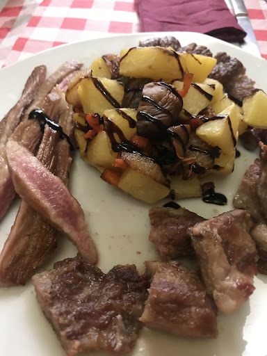 Read moreTeníamos mesa reservada y pensábamos que aprovecharían para ponernos en la terraza cosa que no fué así. El propietario era gracioso y majete (cosa que se agradece) pero las raciones nos parecieron un poco escuetas. La ración de tomate era UN tomate cortado en rodajas, lo cual lo convierte en un plato caro ya que costaba seis euros; también pedimos una ensalada de escabeche mínima. La ración de croquetas estaba muy bien de calidad y de precio. El plato de espárragos con queso azul estaba buena pero se hubieran agradecido unos pocos espárragos más... Luego el surtido de cerdo nos pareció lo mejor, 3 tipos distintos de carne y una ración decente, pero el chuletón fue la gran decepción. Con mucho nervio y demasiado fino (dejando al margen que lo llamaron dos veces entrecot) esa carne desde luego no valía 18 euros. Luego los postres caseros se le habían terminado. En definitiva, un sitio donde se come bien, pero igual para grupos de más de 5 personas deberían repensar...
