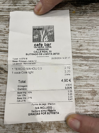 Read moreCamarero un de borde. las patatas Ali Oli son fritas cuando deberían ser cocidas la tosta de queso de cabra y cebolla caramelizada la cebolla estaba fría y las croquetas sin más para el tiempo que hemos esperado no merece la pena y para colmo nos cobra todo a un precio más caro que el de la carta y dice el jeta que ya me lo había dicho le e puesto una hoja de reclamaciones y me daba la copia que no era en fin para no volver. La hoja de reclamaciones no a funcionado la comunidad de Madrid no a conseguido llegar a un acuerdo , espero que le vaya mal...
