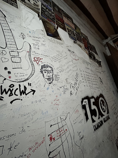 Puedes estar dentro o fuera. Es curioso, forma parte de un callejón, que es su terraza y está completamente adornado por pintadas y pósters relacionados con el rock.