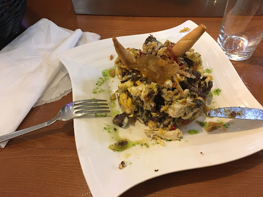 Paramos en el Burgo de Osma a comer de tapeo y la verdad que no nos arrependtimos de entrar en este bar situado en la calle mayor en una de las zonas de soportales. Llegamos tarde (a las 15 y pcio) y no pusieron ninguna pega para atendernos, todo lo contrario, sólo nos dijeron que en 20 minutos cerraban la cocina y que si queríamos algo de cocina que lo pidieramos cuanto antes, vamos lo normal :-). Servicio atento y agradable. Local con barra, unas pocas mesas bajas que estabana todas llenas, yvarias mesas altas donde comimos estupendamente. La comida bastante bien, de estilo tradicional probamos una patatas meneás con torreznos muy ricas, tanto las patatas como los torreznos y la ración bien de cantidad. También probamos unas tostas de queso y mermelada, foie con una reducció nde vino dulce y lomo, baco y queso y las tres estaban buenas, sin ser las mejores que hemos probado estabana buenas. También probamos unos pimientos rellenos de bacalao rebozados también ricos y unos mejillones en escabeche que se nos antojaron. Para beber unas cervezas y de postre unos cafés y unos torreznos para llevar :-) todo por 38€. Vamos, que cuando volvamos por el Burgo de Osma no...