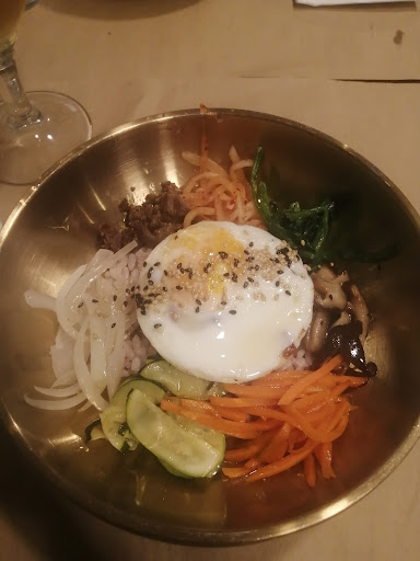 Read moreMe vi el juego el calamar 2 en netflix y me encontré motivado a probar algo nuevo, para mi sorpresa fue una muy buena idea. Local agradable pero un poco pequeñito hace buena temperatura dentro y las sillas son cómodas, hay decoración coreana como banderas y demás logos y accesorios. Yo entré con reserva con 3 familiares, la atención fue muy buena la camarera es muy amable y graciosa. Pedimos un total de 6 platos y probamos todos los postres, he de admitir que algunos sabores no fueron de mi agrado pero es normal tratandose de una gastronomía tan distinta pero la mayoría de platos eran deliciosos a mi parecer, os recomiendo las bolas de pollo agridulce y la ternera con verduras y arroz, también esa especie de gyozas(cerdo,verdura y col todas buenas). Los postres estaban bastante buenos, recomiendo el helado de sésamo negro,el mochi de chocolate y el greewni (browni de té verde). Por último he de decir (como sugerencia) que podrían haber hecho una decoración mas atrevida y tradicional. No os echéis atrás con los platos picantes aunque os digan que pican, mi madre se los pudo comer...