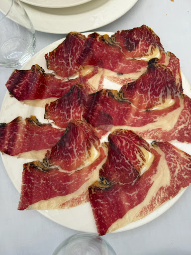 Best sit down meal we've had in 2 trips to Spain! Highly recommend for a special meal, or any time. Excellent service, fun comfortable environment. Entire staff very welcoming, knowledgeable and helpful with our limited Spanish. Surrounded by tables of happy local families. Recommend booking ahead, as they only serve lunch from 1:30pm It was very easy by the mobile WhatsApp number provided. They were very patient and responsive for booking. We ordered the 'Menu San Lorenzo' with the Cordero lechal asado, 42 euro pp. Includes 5 full size appetizers, a whole roasted leg of local DOP baby lamb, salad, water, bottle of Ribera or Rioja wine, bread, coffee and liquors. Simply cannot get a better meal and for the value! Best leg of lamb I ever had. Succulent, moist, tasty, cripy skin bits were like lamb chicharrones. The Revueltos con setas y gambas appetizer was unbelievable with the fresh crusty included. The aroma of mushrooms when it arrived at the table was so intense. I love morcilla and so should anyone who enjoys meatloaf! Delicious with the sweet roasted peppers. Homemade desserts were exactly what we hoped for, classic Spanish gooey, creamy cheesecake and eggy, toasted caramelly flan. Perfect lightly chilled local red. To finish they drop 2 bottles of digestivios on the table with a couple of frosty shot glasses so you can...